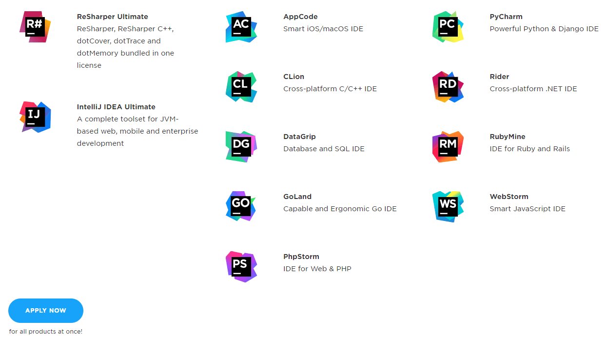 免费学生授权包含所有JetBrains Toolbox下的专业开发工具:IntelliJ IDEA Ultimate,ReSharper Ultimate 和所有集成开发工具。是的,统统免费!