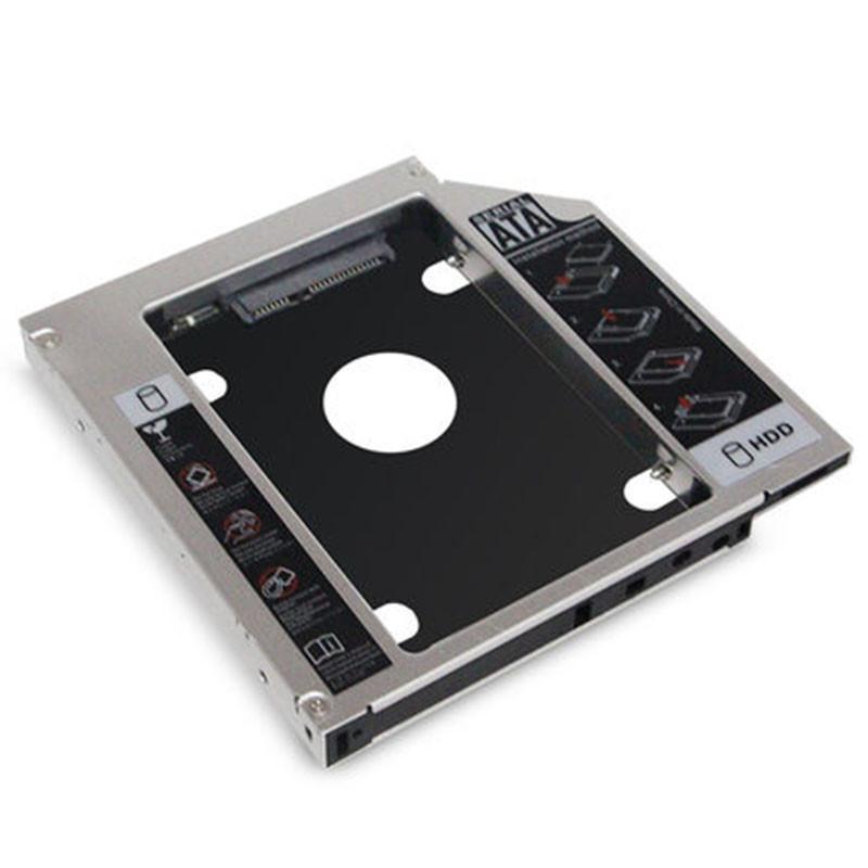 上图就是常见的硬盘托架的外形,这里我们需要替换原有的HDD,然后拆掉笔记本光驱,将光驱上的螺丝和配件转移到硬盘托架上,以确保购买的硬盘托架和笔记本电脑模具间良好的兼容性。接下来将机械硬盘放在硬盘托架上,使用螺丝或者胶条进行固定,然后将托架安装在原有的光驱位就好。这里不推荐将SSD放在光驱位硬盘托架上,因为光驱接口一般只有SATA2的速度,因此相对原有的SATA3位置其速度将会大打折扣。
